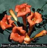 trumpet-shaped flowers, is a woody-stemmed root climber that grows best in