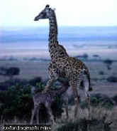 range has drifted geographically. Here, a young giraffe suckles from its