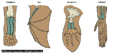 animal’s particular needs. Here, the bones of the forelimb are adapted to