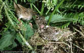 nest by a much smaller adult bird (left). This is a good example of