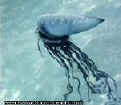 of the wind on its blue, gas-filled float. Stinging tentacles, as long as 20