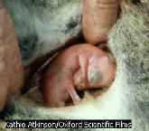 curled up in its mother’s pouch and will be for several more months, not